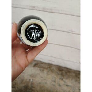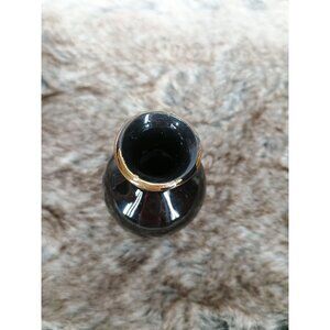 Vintage Hand-Painted Black Ceramic Vase With Gold Rim & Bird Floral Design