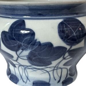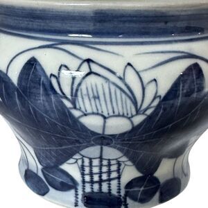 Vintage Chinoiserie Blue & White Lotus Bowl / Potpourri Pot Elegant Hand-Painted Ceramic