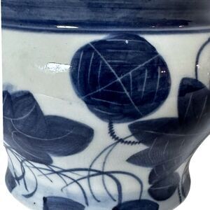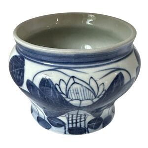 Vintage Hand-Painted Ceramic Chinoiserie Blue & White Lotus Bowl / Potpourri Pot