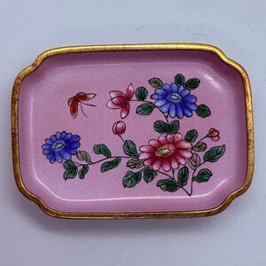 Vintage Hand-Painted Floral Pink Ceramic Trinket Tray With Gold Trim