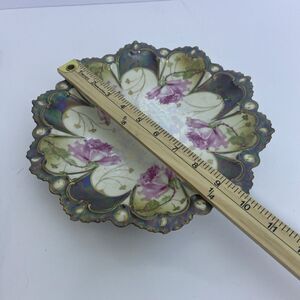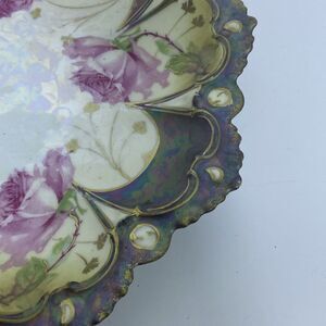 Vintage Hand-Painted Floral Porcelain Plate Pink Roses Scalloped Edge Iridescent