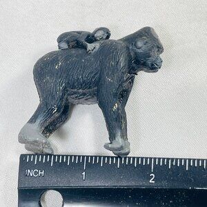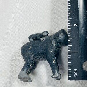 Vintage Hand-Painted Gorilla Figurine With Baby On Back Rubber Toy
