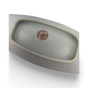 This beautiful vintage Japanese porcelain trinket dish features a hand-painted design of a colorful bird perched among blooming pink peonies on a rich blue background. The dish is accented with a gold-painted rim, adding an elegant touch. Marked "Hand-Painted Made in Japan", this piece likely dates to the 1920s–1940s, during the early 20th-century export era of Japanese ceramics. Perfect for use as a ring dish, small catchall tray, or decorative display piece.