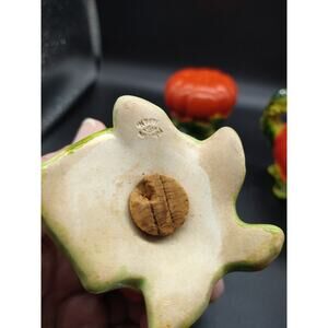 Add some vintage charm to your dinner table with this miniature hand painted pumpkin set. The set includes salt and pepper shakers and a sugar bowl with lid, all made in Japan. The toleware style and handmade details make it a unique addition to your collection. The set comes with four pieces in total and is perfect for collectors of kitchen and home decor.
