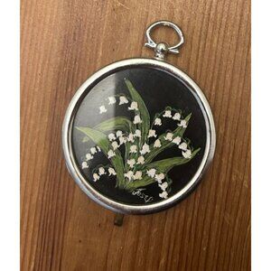 Vintage Hand-Painted Miniature Floral Wall Hanging Ornaments Silver Metal Frames