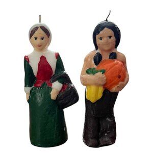 This set of hand-painted candles features Pilgrim and Native American figures, making it an ideal addition to holiday centerpieces or seasonal displays.