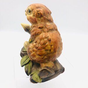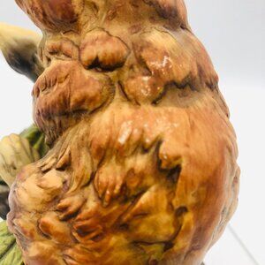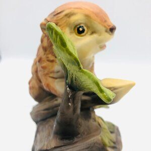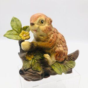 Vintage Hand-Painted Porcelain Beaver Figurine on Tree Flowers 5" Studio Made