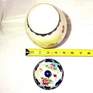 Vintage Hand-Painted Porcelain Floral Biscuit Jar with Lid Cobalt Blue Roses