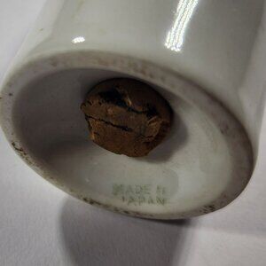 This vintage porcelain salt shaker features a hand-painted floral design and gold-tone top. Made in Japan, it adds elegance to table decor.