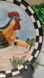 Vintage Hand-Painted Rooster Decorative Plate Black & White Checkerboard Rim 8"