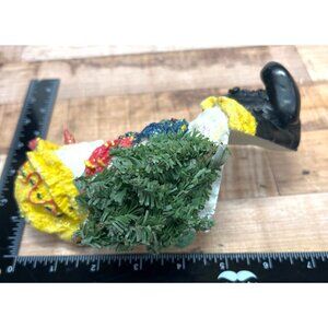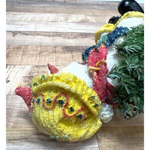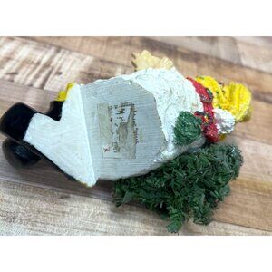 This vintage snowman figurine, adorned with a vibrant bird and tree, adds a touch of winter charm to any collection. Its hand-painted details and cheerful expression make it a delightful decorative piece for showcasing during the holiday season. Crafted with meticulous care, it's a timeless addition to seasonal decor.