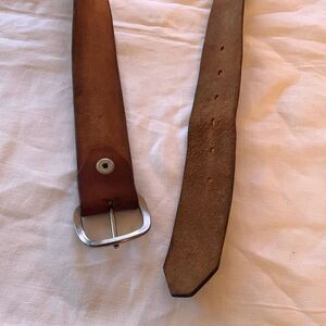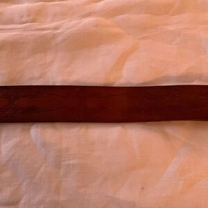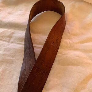 Vintage Hand Tooled Brown Leather Belt Size Large Full Grain Cowhide USA No Loop Worn