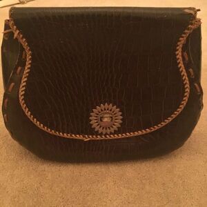Vintage Hand Tooled Brown Leather Shoulder Handbag Purse- READ all