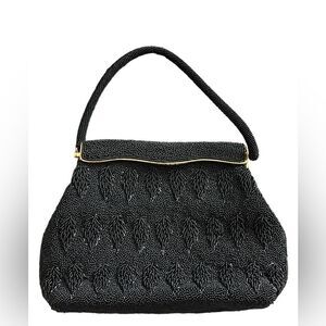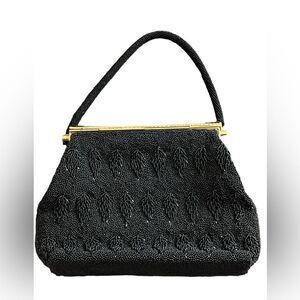 Vintage Handbeaded 1950’s Evening Bag Made in Hong Kong Flip Top in Goldtone