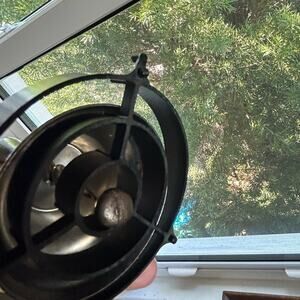 Classic vintage handbell featuring a turned wooden handle and cast metal bell. Stands approximately 5” tall with a 3” wide bell. The bell delivers a crisp, loud ring—perfect for classroom, call bell, or decorative use. Comes with a metal wall mount cradle for easy display or storage.
