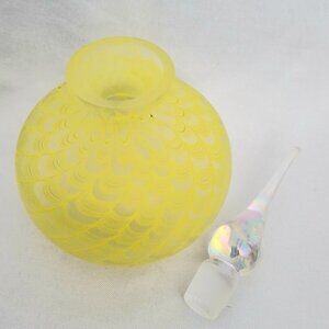 Vintage Handblown Art Glass Perfume Bottle – Yellow Frosted with Iridized Stoppe