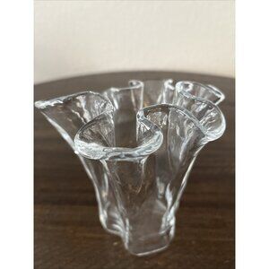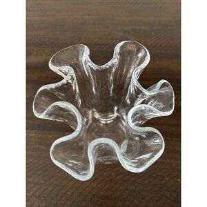 Vintage Hand-blown Art Glass Ruffle Handkerchief Vase 7”