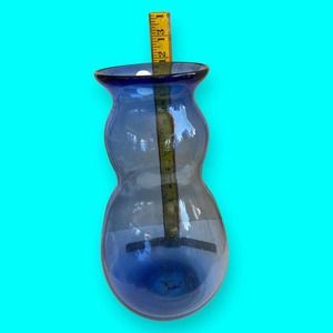 This beautiful vintage vase is a true gem for any collector. The stunning blue color and unique hand blown glass production technique make this piece a standout addition to any home.