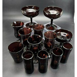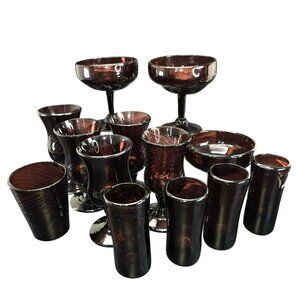 Vintage Handblown Dark Pink Glass Drinkware Set of 14 Pieces DH1357