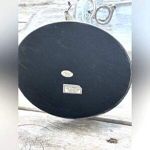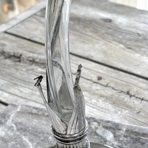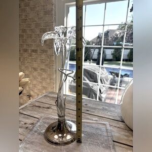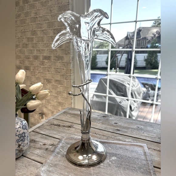 Vintage Art Nouveau, Deco inspired Vase With Handblown Glass Lily In A Silver-Plated Base/Holder. Very little corrosion, and what is there will probably buff out. Measures 15" x 7" x 4". Features: high-quality glass, durable, exceptional quality. No chips, cracks- Smoke free home. Flowers not included.
