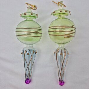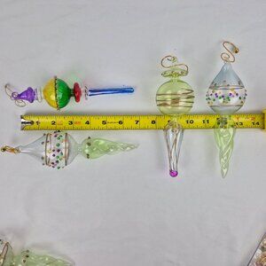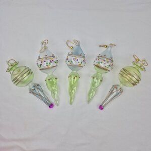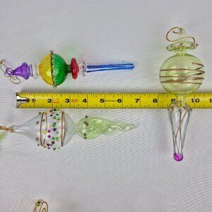 Vintage Handblown Glass Painted Finial Ornaments Lot of 6