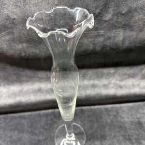 Vintage Handblown Princess House Heritage Clear Crystal Etched Bud Flower Vase