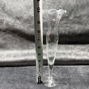 This vintage Princess House Heritage Clear Crystal Etched Bud Flower Vase is a stunning piece that exudes elegance and charm. Handblown in 1983 in the United States, this slender and tall vase features ruffled edges, a floral pattern, and a high gloss finish. The clear crystal material and hand-cut design add to its beauty, making it a perfect decorative item for all occasions.