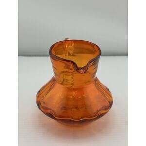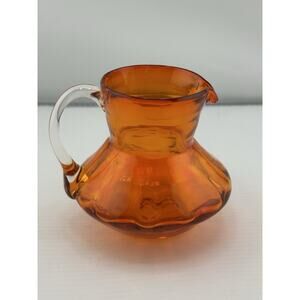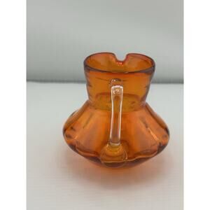 Vintage Handblown Tangerine Orange Glass Small Pitcher/Creamer Clear Handle 3"