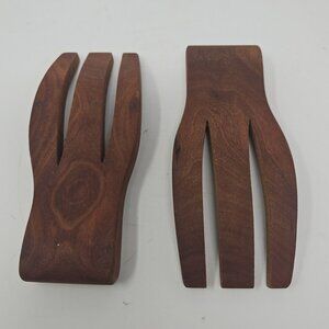 Vintage Handcarved Teak Wood Salad Fork Serving Tongs Danish Modern MCM