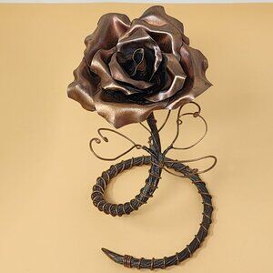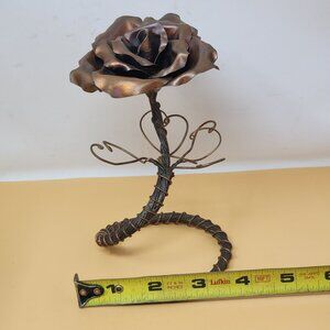Vintage Handcrafted Antique Copper Finish Metal Rose Sculpture Art Piece