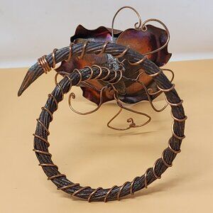This meticulously crafted copper metal rose sculpture exudes elegance and sophistication. Its intricate detailing and unique design make it a striking decorative piece, ideal for enhancing any space with its artistic charm. The rich copper finish lends warmth and a timeless aesthetic, ensuring it stands out in any collection or setting.