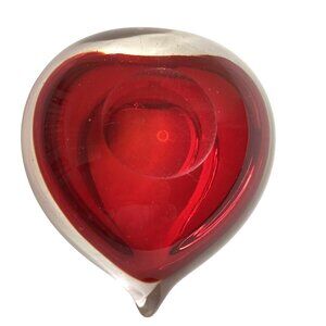 Vintage Handcrafted Art Glass Red Heart Shaped Paperweight or Trinket Bowl
