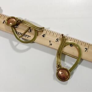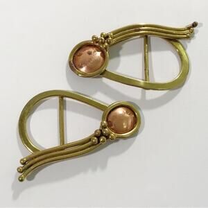 Vintage Handcrafted Set of Two Baldwin Signed Modernist Copper and Brass Scarf Headwrap Headscarf Belt Buckle Brooch