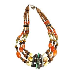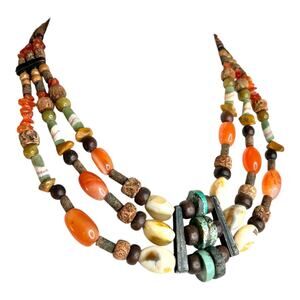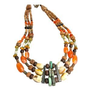 Vintage Handcrafted Berber Style Semiprecious Gemstones Wood Beads Bib Necklace