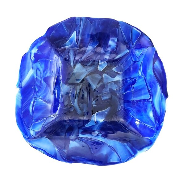 Vintage Handcrafted Blue Glass Bowl With Unique Layer Design