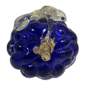 Vintage Handcrafted Blue Glass Grape Figurine Gold Leaf Accents Murano-Style
