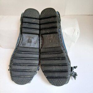 Vintage Handcrafted Blue Leather 3D Flower Slip-On Lug Sole Moccasins Sz 7