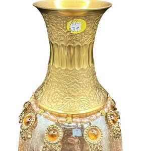 decorative vase gold vase handcrafted vase floral design glass and metal amber accents home decor elegant vase statement piece luxury decor ornate vase ornamental vase home accessories