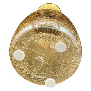 Vintage Handcrafted Brass Floral Etched Neck Ornate Amber Crackle Glass Vase