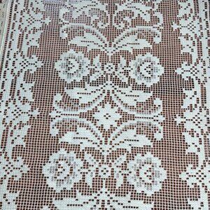 Vintage Handcrafted Crochet Lace Table Runner Floral Pattern 38" x 17"