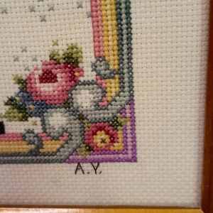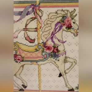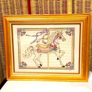 Vintage Handcrafted Cross-Stitching Carousel Horse Frame Sign A.Y. 19x16