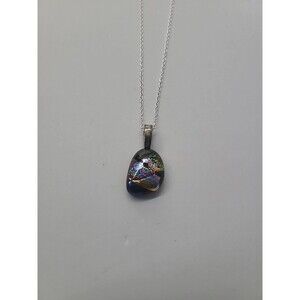Vintage Handcrafted Dichroic Glass Pendant Necklace Iridescent Rainbow Art Glass