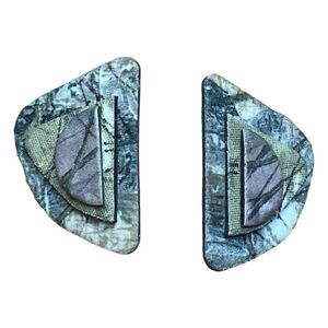 Vintage Handcrafted Earrings Purple Tan Abstract Wood Printed Pattern Fabric Pie