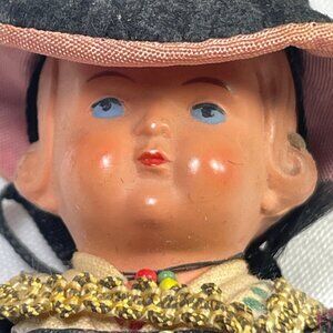 Vintage Handcrafted European Folk Art Doll With Traditional Dress & Hat Collecti