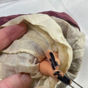 This vintage doll tells the story of a forgotten era, beautifully adorned in intricate lace and embroidered patterns. The carefully crafted details, from her shawl to the ornate dress, evoke a sense of cultural heritage. She stands as a timeless piece of art, ready to grace any collection.