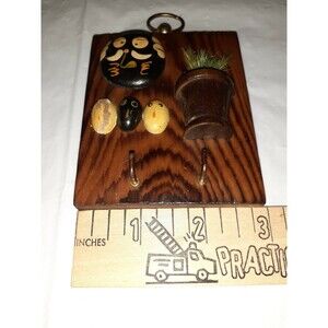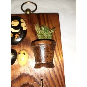 Vintage Handcrafted Keyhook Painted Rocks Wood Backing . As pictured, features a large rock with face painted on it. Below that, there are three smaller rocks or dry beans that had faces painted on them. Beside that there is a little pot with fake plant. Features two hooks for keys. Odd little piece that could be revived or dismantled for parts. The three small rocks definitely need repainting. Condition is Used. Shipped with USPS First Class Mail.
