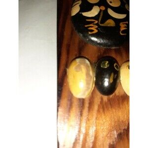 Vintage Handcrafted Keyhook Painted Rocks Stained Wood Backing Boho Ecclectic
