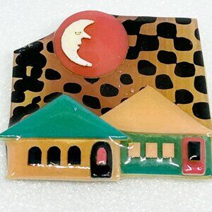 Vintage Handcrafted Lucinda House Pin With Night Sky & Moon Design