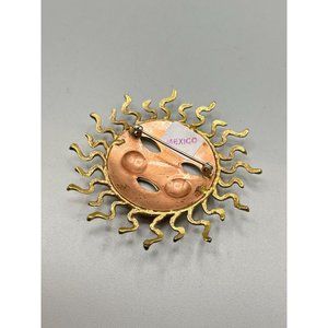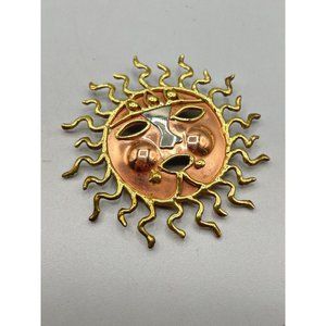 Vintage Handcrafted Mixed Metal Sunface Brooch Brutalist Made in Mexico Sunburst