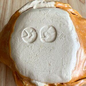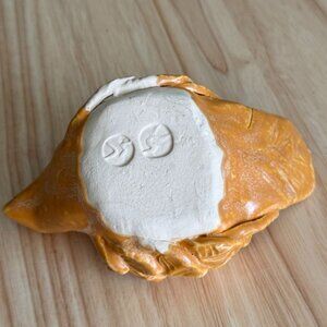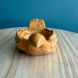 Vintage Handcrafted Orange Ceramic Bird Dish Candle Ring With Feather Detail MCM